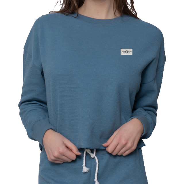 The Fountain Womens Cool Breeze Crop Crew is a light weight, super soft, cropped pullover sweatshirt. This cropped pullover features a 4-way stretch micro-waffle blend that makes it ultra comfy for those cooler days on the water.