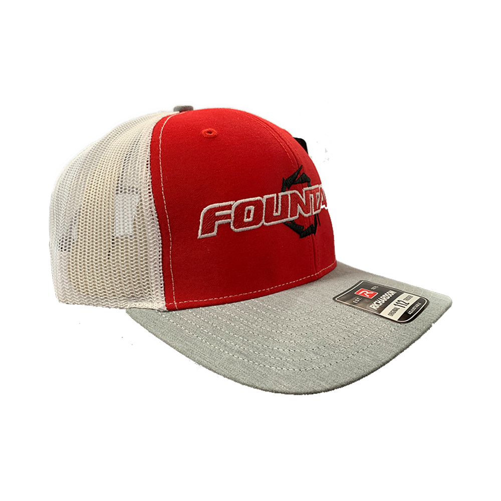 The Fountain Big Block Snapback Hat features a fully embroidered Fountain logo with a snapback closure. This hats features a tri-color pattern with a red front, white mesh back and a grey bill with a grey button on top. Snag one today and represent your favorite boat brand 24-7.