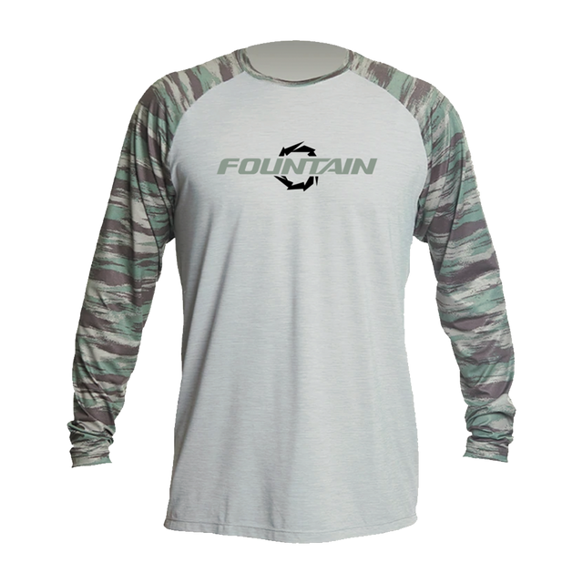 Fountain Camo Dri Fit Long Sleeve Raglan Shirt - Small / Camo is backordered and will ship as soon as it is back in stock.