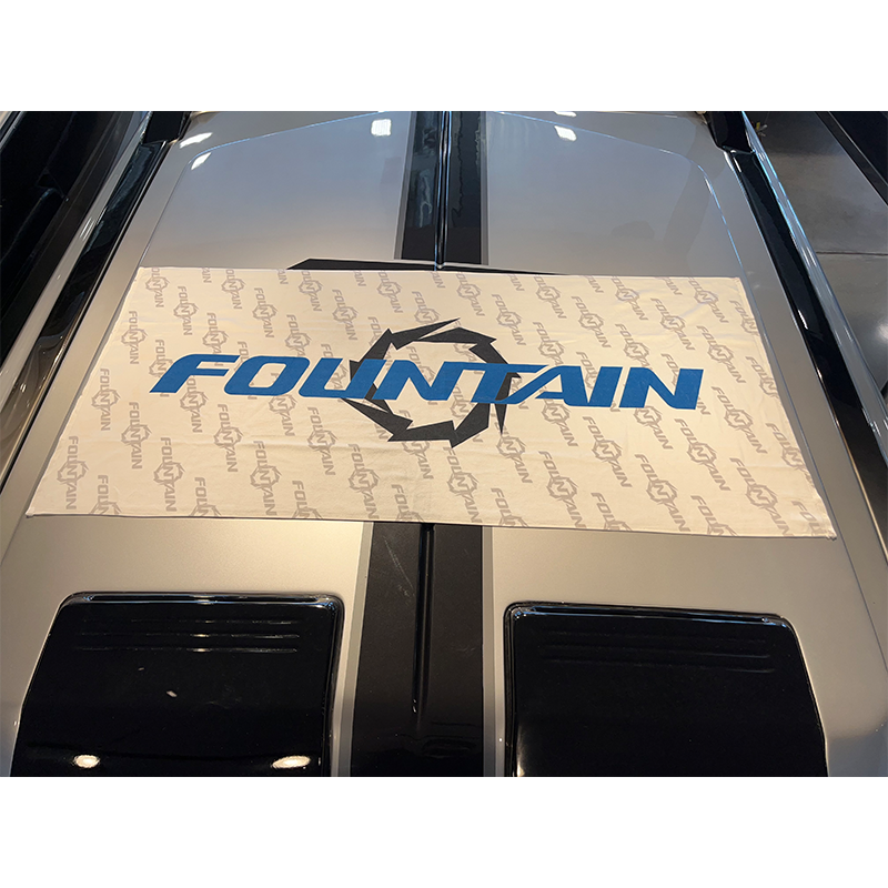 This Fountain Powerboats Slant Towel is a 30in x 60in lighter weight beach towel (1.45lb dry weight). The two reasons we chose a lighter weight towel - First, you'd have a better shot at being able to dry out your towel when you spend an entire day on the water. Second, we wanted to make sure these were easier to pack when loading up gear for a day out.